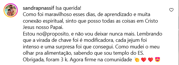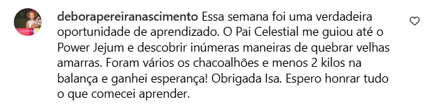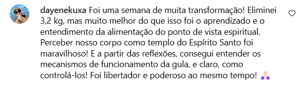 Seu propósito é guiar mulheres no processo de emagrecimento oferecendo alimento de corpo, mente e alma em um ambiente seguro de uma maneira constante, leve e acolhedora.